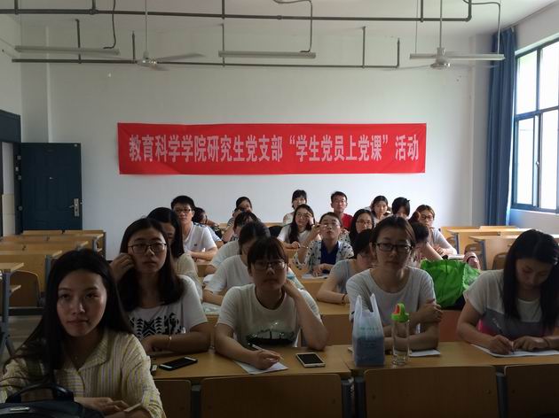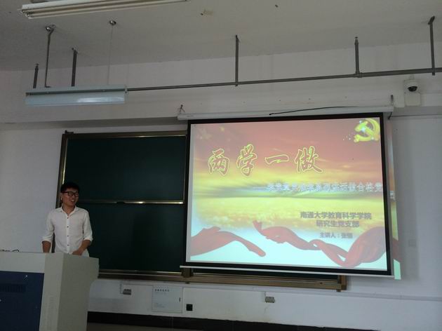6月23日,星空网页版登录入口研究生党支部在18号教学楼102教室举办学生党员上党课活动。研15教育张恒同学和研14教育卢倩同学围绕“两学一做”主题,分别为大家上了一节20分钟的微党课。研究生党支部书记蔡婧老师、研究生党支部全体学生党员和入党积极分子参加本次活动。