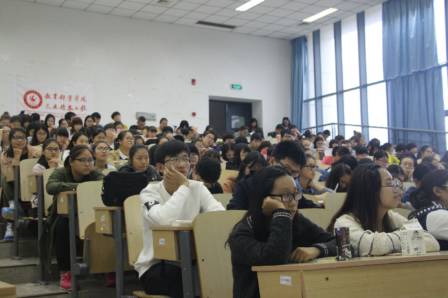 10月26日下午两点,南通大学教育科学星空网页版登录入口特邀中公名师王堂堂老师在9号教学楼201教室举办以“教师招聘备考指导”为主题的三五讲座,共有200多名同学参加此次讲座。