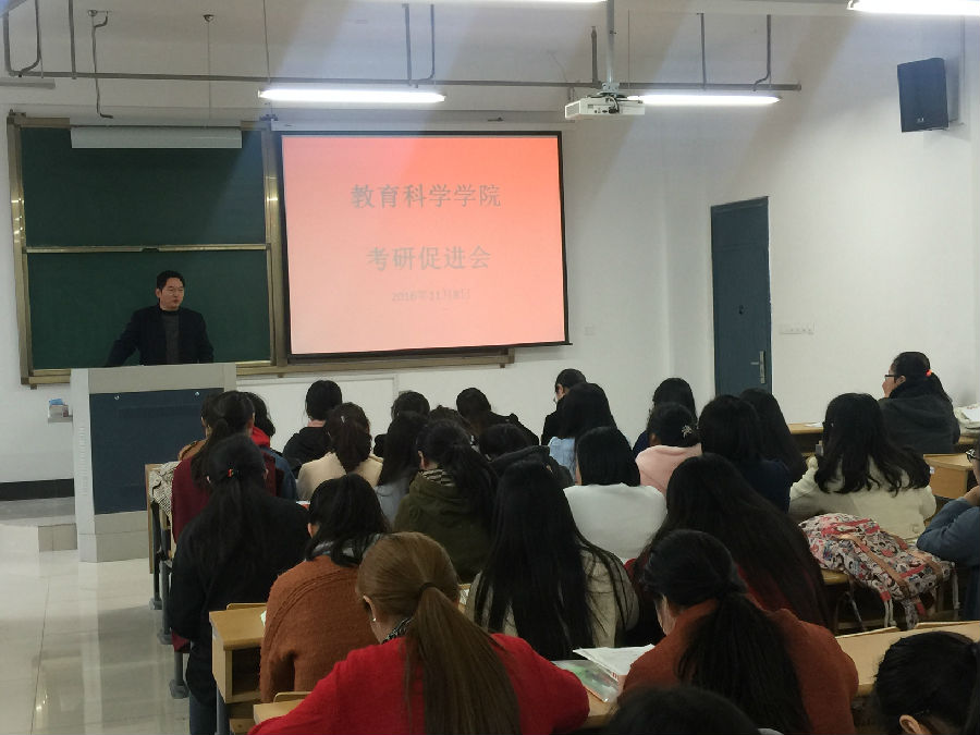 2016年11月8日下午14:00,教育科学星空网页版登录入口在18号教学楼417召开了考研促进会。党总支副书记徐红波、副院长沈永江、学工办主任陈淑慧以及报名参加2017年研究生入学考试的116名学生参加了此次会议。