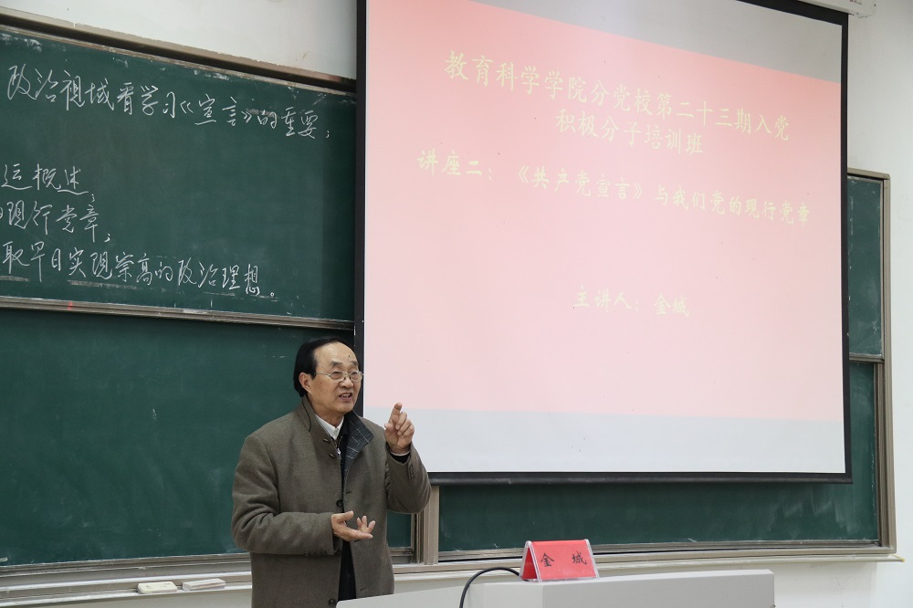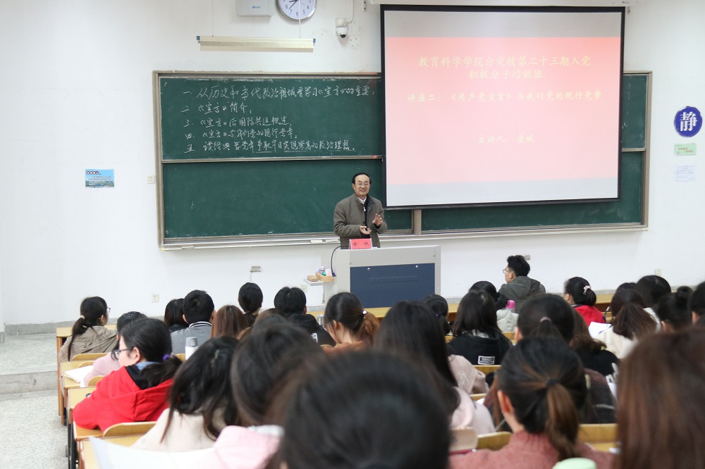 3月30日上午,星空网页版登录入口特邀校关心下一代工作委员会常务副主任金城为第二十三期入党积极分子培训班学员作“《共产党宣言》与我们党的现行党章”专题讲座。