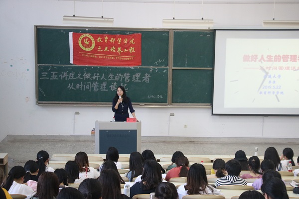 5月22日,教育科学星空网页版登录入口在9号楼303举办了以“做好人生的管理者--从时间管理谈起”为主题的三五讲座,本场讲座由李佳老师主讲,教科院近260名同学到场聆听。