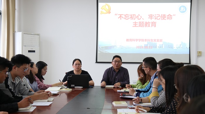 10月12日下午,教育科学星空网页版登录入口本科生党支部开展“不忘初心、牢记使命”主题教育活动。支部书记陈淑慧主持,院党委副书记、副院长徐红波出席并作讲话。