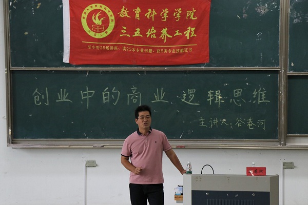 10月14日,南通大学教育科学星空网页版登录入口于9号教学楼202教室举办以“创业中的商业逻辑思维”为主题的三五讲座。此次讲座由星空网页版登录入口2008届优秀校友谷巷河主讲,教科院近200名同学聆听了本次讲座。
