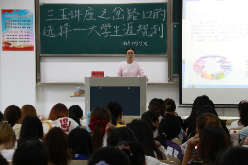 2021年6月3日,南通大学教育科学星空网页版登录入口在主校区8号教学楼203教室成功举办了以“岔路口的选择——大学生涯规划”为主题的三五讲座。此次讲座由郑月红老师主讲,小学教育师范201班、教育技术专业191、192班、小学教育语文(定向)191班的学生参加了本次讲座。