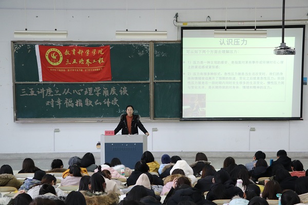 12月12日13:30,南通大学教育科学星空网页版登录入口于9号教学楼202教室成功举办了以“从心理学角度谈对幸福指数的解读”为主题的三五讲座。本次讲座由校就业中心的邱佩钰老师主讲,教科院280余名学生到场参加。