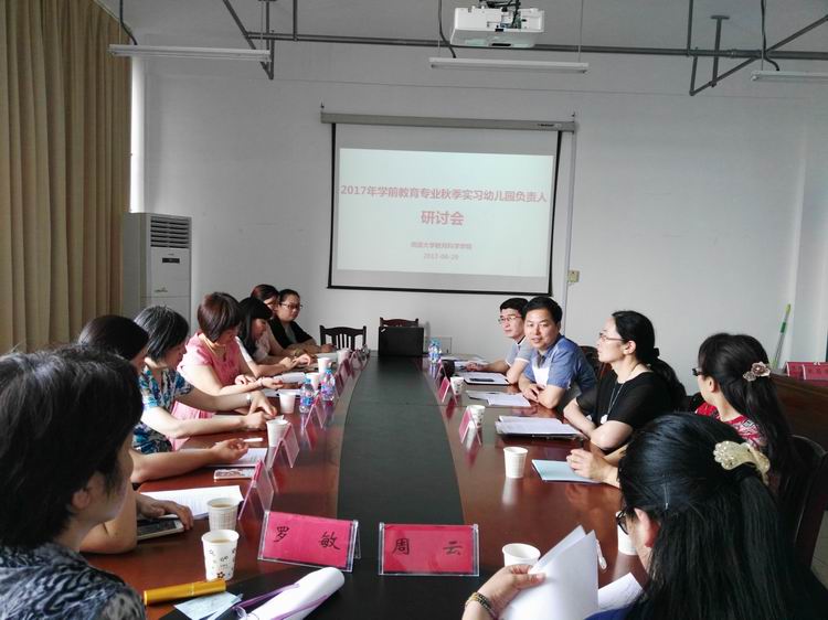 为了顺利推进秋季教育实习工作,6月29日下午,2017年学前教育专业教育实习座谈会在18号楼1016举行,来自南通市崇川区的11所幼儿园的负责人、教务处顾健辉副处长、教育科学星空网页版登录入口许铁梅副院长、教师教育星空网页版登录入口姜永杰副院长,以及部分实习带队教师等参加了本次会议,会议由姜永杰副院长主持。