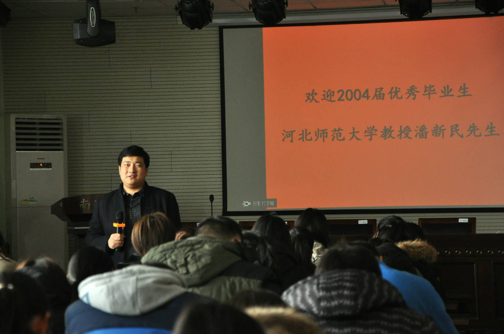 潘新民教授首先对母校的悉心培养和恩师的谆谆教导表示感谢。他深情地回忆了自己当年在校的学习生活,感概良多。他建议在校大学生要找到自己的兴趣点,以此制定目标,不断前行。他认为,人之所以会迷茫,正是因为没有目标,有了目标就可以持续不断的努力,有了目标的人生才会有动力。向着目标不断的努力,知行合一,才会获得成功。潘教授还向同学们分享了自己的考研经历,鼓励同学们大胆选择,认真复习,锁定目标,坚定信念,勇往直前。对于选择其他方向的同学,潘教授也给出了有针对性建议,希望不考研的同学也像自己同届的同学一样,在各自领域的发展成为社会的有用之才。