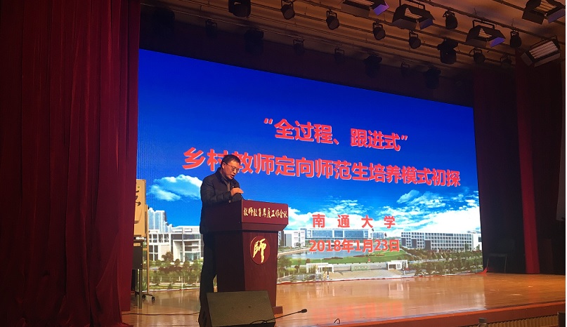 1月23日上午,由江苏省教育厅、江苏省师干培中心主办的江苏省教师教育年度工作会议在南京召开,会议对2017年教师教育工作和教育培训工作进行了总结,对2018年全省教师教育工作进行了部署。为总结经验、加强交流学习,激励各地各校创新发展,全面加强教师队伍建设,省教育厅还组织了教师队伍建设优秀工作案例评选工作。我校申报的工作案例:“全过程、跟进式”乡村教师定向师范生培养模式初探,获评一等奖,并在会议上作为唯一一家高校代表进行了汇报交流,受到了广泛好评,较好地扩大了我校教师教育工作的影响力。
