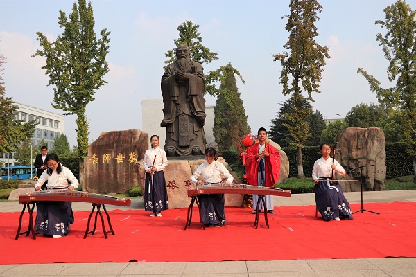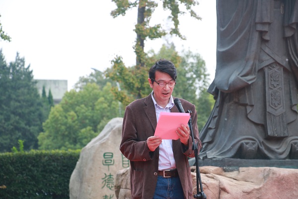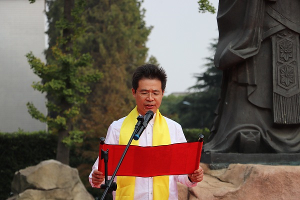 在肃穆的氛围中,教师代表陈昌海老师高声宣读祭文,以缅怀的孔子绝世功绩、伟大思想和高尚人格。