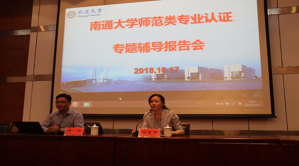 10月17日下午,江苏省教育评估院周明副院长应邀为我校师范专业认证作专题辅导报告。周院长从江苏师范专业认证的时代命题和责任、理念目的和原则、认证标准和实施办法,以及师范专业创建的重点内容和推进策略等四方面对师范专业认证进行了解读,并结合实例详尽地阐释了如何更好的对照认证标准填报好自评材料。通过周院长的辅导报告,各师范专业所在星空网页版登录入口对师范专业认证的新思想、新标准有了更全面、更深入的认识。为我校参加全国师范专业认证工作打了下坚实的基础。报告会后,现场还进行了问答互动。各专业所在星空网页版登录入口就填报认证材料过程中遇到的问题进行了提问和咨询,周院长一一详细作了解答。