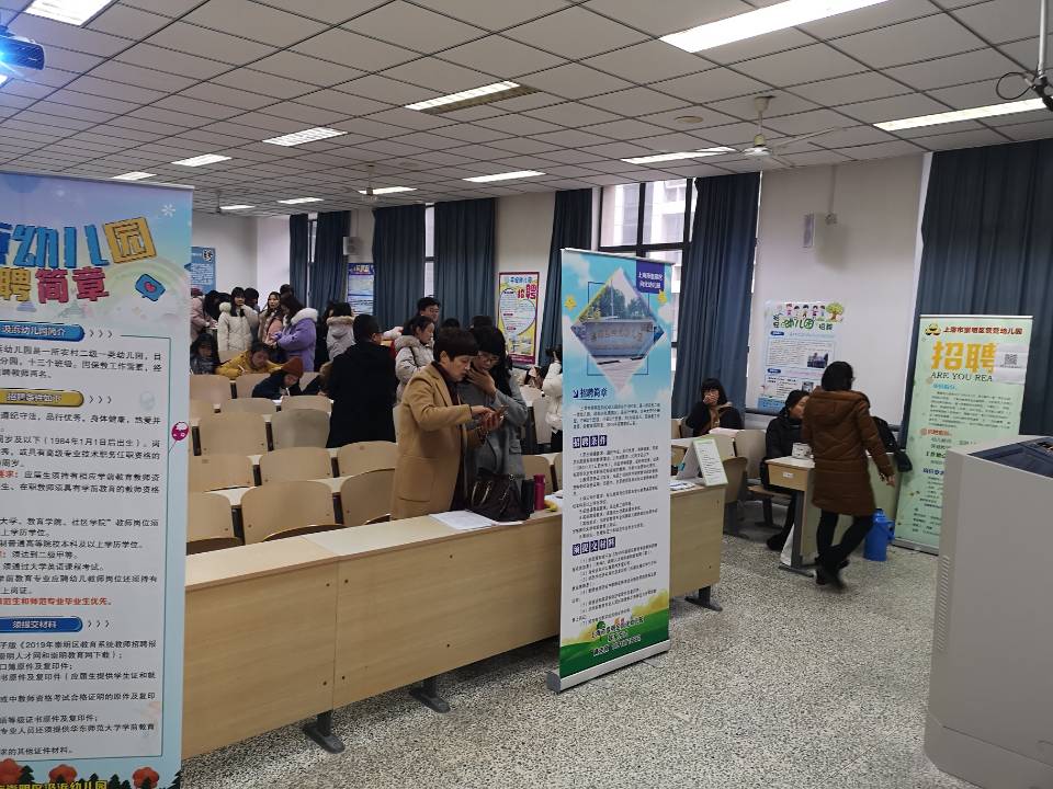 1月7日下午,教育科学星空网页版登录入口2019届毕业生专场招聘会在主校区8号、9号教学楼多个教室举办,吸引了上海市崇明教育局、太仓教育局带领辖区学校组团前来招聘,其中上海市崇明教育局带领崇明区域24家学校负责人参加招聘会进行现场面试。另有南通诺德安达双语学校、吉的堡幼儿园等12家单位前来现场招聘,为我校本科师范毕业生提供了约300多个就业岗位,为研究生同学提供了上百个就业岗位。以教科院毕业生为主体的400多名毕业生参加了招聘活动。