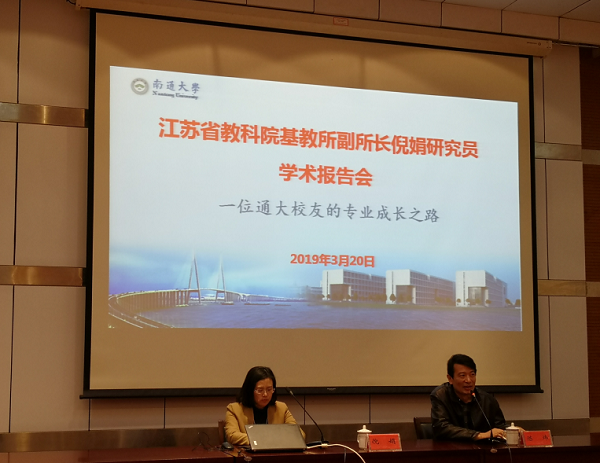 倪娟研究员深入浅出地向同学们讲述了自己求学、就业、成长的人生经历,分别从“一个人的起点很重要,但不是最重要;人的自我发展与专业发展都具有阶段性;简约专注,努力提升自我”三个方面分享了一位通大校友的专业成长之路,并提出作为乡村教师定向师范生要牢固树立“扎根乡村、服务乡村”的意识,要对教师这一崇高的职业充满热爱,要对自己充满自信,在成长的道路上多一些简单、少一些功利,潜心读书、追求卓越、不断挑战和提升自我。