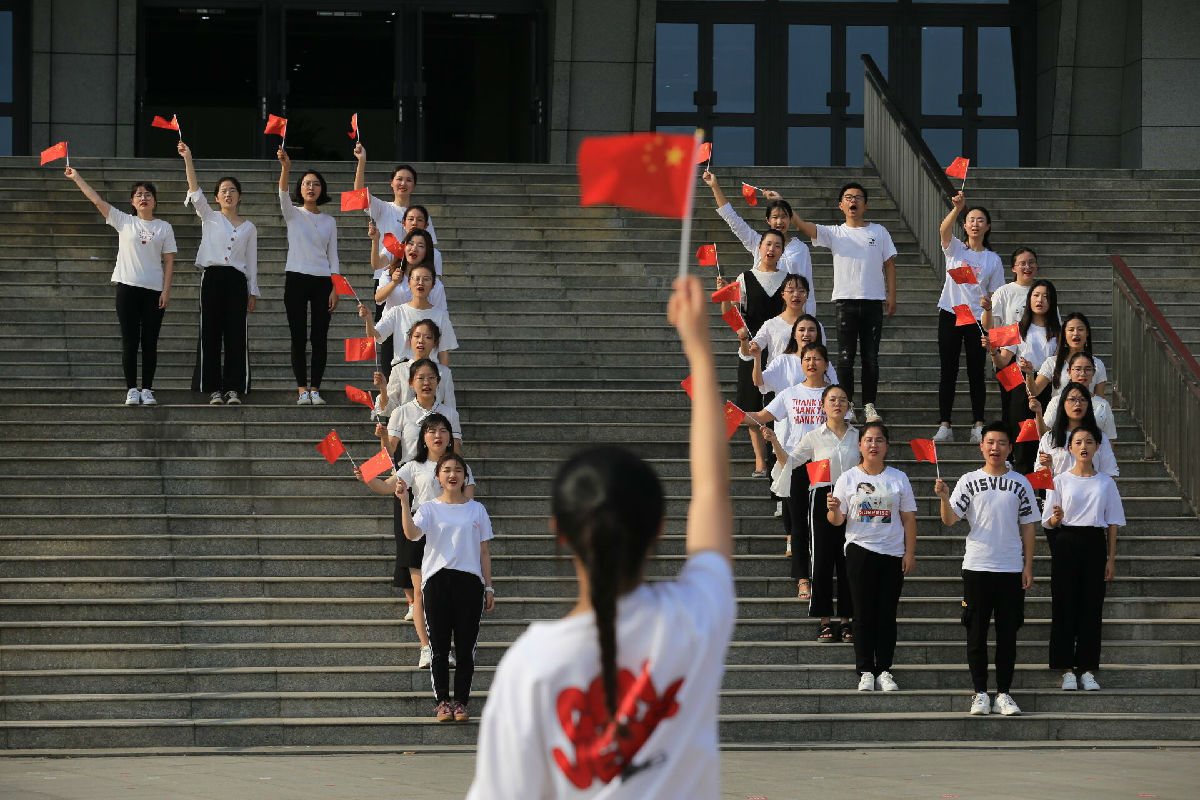 9月28日下午,教育科学星空网页版登录入口学前教育专业研究生在图书馆广场举行庆祝新中国70华诞快闪活动。