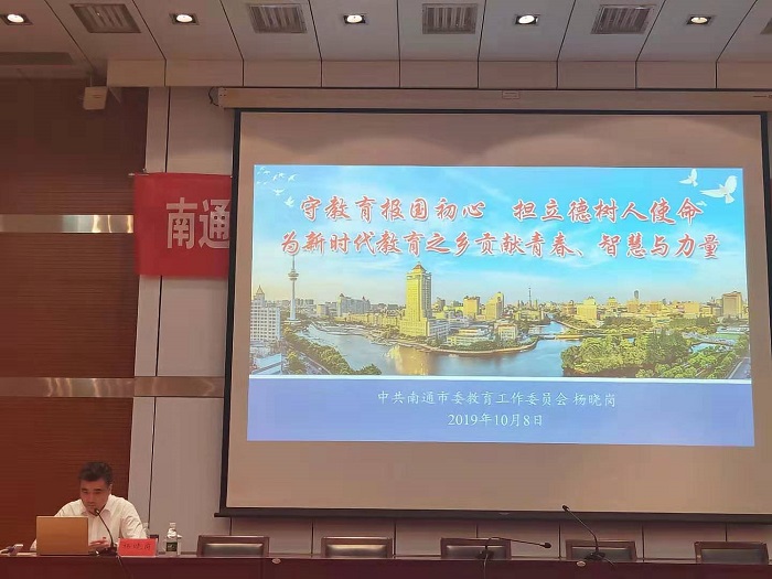 10月9日下午,南通市委教育工委副书记杨晓岗应邀为我校2019定向师范生作题为《守教育报国初心担立德树人使命为新时代教育之乡贡献青春、智慧与力量》的报告。教育科学星空网页版登录入口(教师教育星空网页版登录入口)副院长许铁梅教授主持报告会。