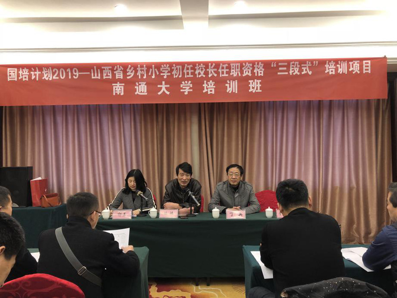2019年12 月10日上午,在南通0513大酒店举行了“国培计划(2019)”——山西省乡村小学初任校长任职资格“三段式”培训项目的开班典礼。会议由南通大学教育科学星空网页版登录入口副教授暨国培班班主任郁美老师主持。南通大学教育科学星空网页版登录入口党总支书记陈炜、南通大学教育科学星空网页版登录入口党政办主任丁兵也出席了此次开班典礼。首先,南通大学教育科学星空网页版登录入口党总支书记陈炜对到南通参加培训的学员们表示热烈欢迎,对南通的基础教育概况以及南通的教育历史做了详细介绍,简述了南通大学的发展状况以及南通大学教科院对国培计划的承担情况。他表示非常感谢学员们克服困难赴通参加培训,并预祝培训班取得圆满成功。星空网页版登录入口代表上台讲话表示非常感谢南通大学此次的培训,同时也代表全体成员表态在此次培训中一定认真学习,遵守培训纪律,将所学内容带回自己学校传递下去。