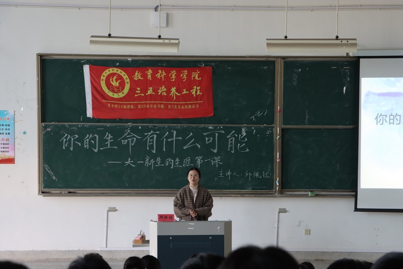 2021年11月15日14:00,南通大学教育科学星空网页版登录入口在主校区9号楼303教室成功举办了以“你的生命有什么可能——大一新生的生涯第一课”为主题的三五讲座。此次讲座由邱佩钰老师主讲,来自教科院的260余名学生参加了本次讲座。